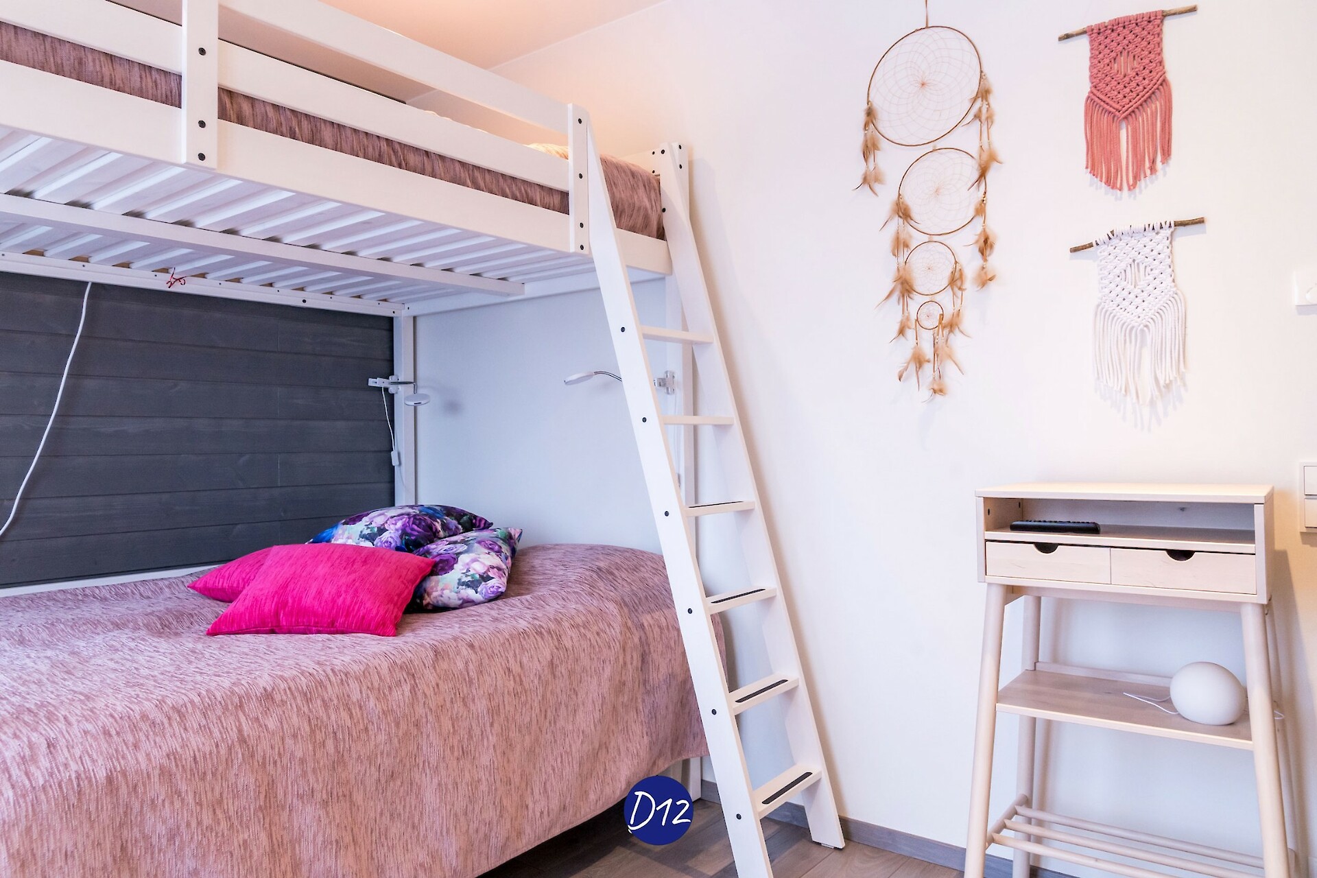 Avarassa alppitalohuoneistossa on tilaa isommallekin perheelle. Asunto on vuonna 2020 valmistuneen hissillisen alppitalon ylimmässä kerroksessa ja parveke on auki koko päädyn matkalta. Huoneistosta löytyy kolme makuuhuonetta, joissa on laadukkaat sängyt kahdelle. Yhdessä makuuhuoneessa on lisäksi parvi 1-2 lapselle.